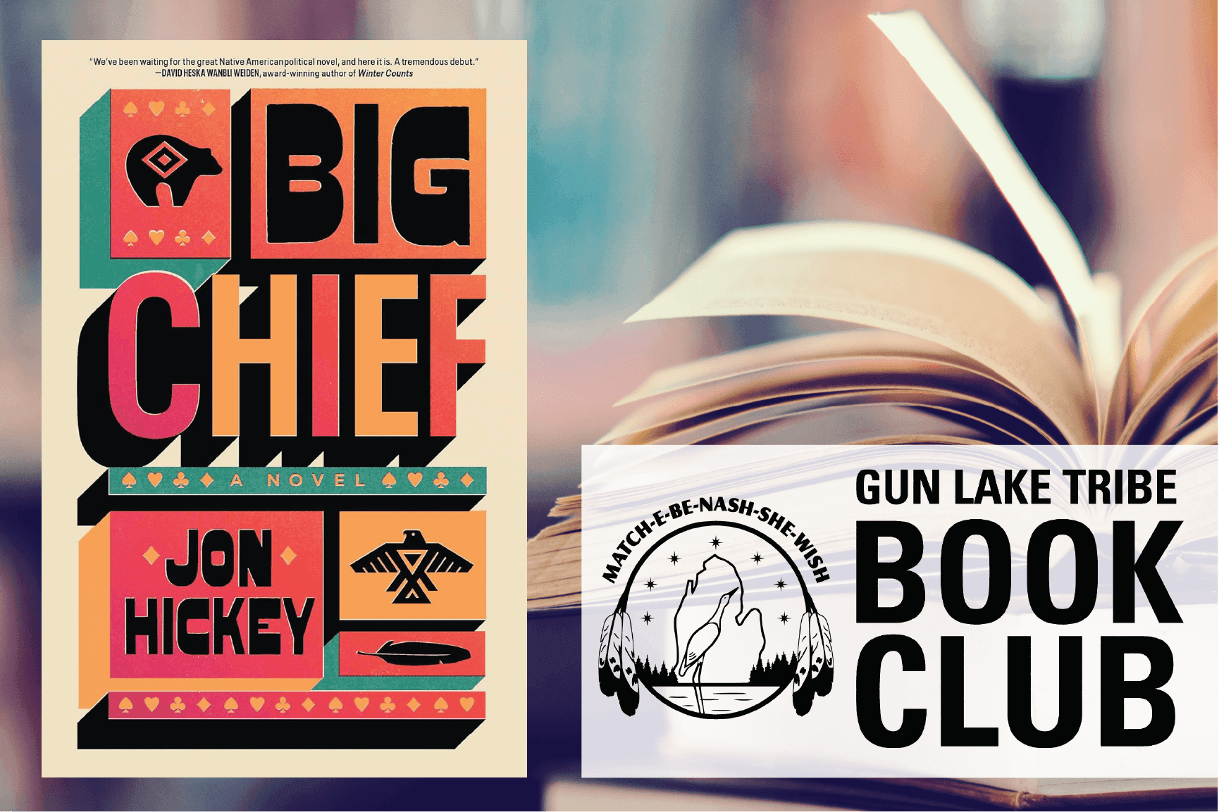 Join us for an in-person book club for a discussion of Big Chief: A Novel by Jon Hickey (Lac du Flambeau Band of Lake Superior Chippewa).