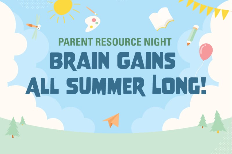 Brain Gains All Summer Long! Come connect, learn, and leave with tools to help your child thrive all summer long!